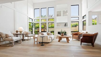 Introducing 4212 Par Five Drive ,an artfully reimagined residence nestled on the prestigious North Ranch Golf Course in Westlake Village. This former model has been refined where timeless design meets modern luxury. From the moment you enter, you're embraced in a sense of elevated sophistication soaring ceilings, expansive windows, and bespoke finishes define every inch of this thoughtfully reimagined space. The heart of the home is a designer kitchen worthy of any culinary enthusiast, appointed with handcrafted custom blended cabinetry, soft-close pull-outs, an expansive Island with white oak natural wood crowned with Tuscan Bronze marble quartz. Top-tier Monogram appliances including a built-in refrigerator and range are joined by a Wolf Professional Coffee System, microwave drawer, sleek to filler for elevated function, built in dishwasher, and all complemented with signature Champagne Bronze fixtures. The primary suite is a serene retreat, offering a spa-inspired bath wrapped in Chateau Carrara marble, custom white oak natural finish vanity finished with a striking slab porcelain top, marble flooring, a sculptural freestanding tub, and a crystal-clear ½-inch frameless blue edged cut glass shower enclosure. Secondary baths mirror this level of sophistication with Taj Mahal stone and large-format linen buff tile. Wide-plank luxury vinyl flooring flows seamlessly throughout the home, lending warmth and continuity to the elevated interiors. An 8-foot panoramic glass door opens to a private wrap-around patio your personal outdoor oasis complete with a brick walkway, cascading fountain, outdoor grill and a built-in fire pit designed for elegant evening entertaining. Inside, three fireplaces add ambiance and charm, while community amenities include a sparkling pool, spa, clubhouse, and neighborhood park just steps away. This is not just a home, it's a statement of refined lifestyle.